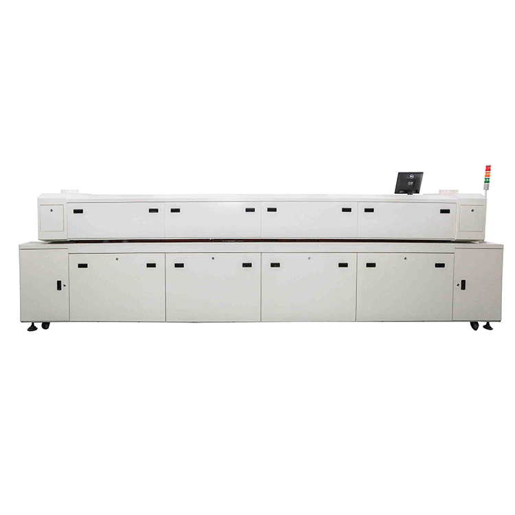溫區式設備大批量生產適合大批量生產PCB板放置在走帶上,要順序經過若干固定溫區,溫區過少會存在溫度跳變現象,不適合高密度組裝板的焊接。而且體積龐大,耗電高。