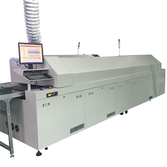 當(dāng)印刷電路板從機(jī)器左側(cè)進(jìn)入時(shí),它通過(guò)頂部的第一個(gè)加熱器、底部的第一個(gè)加熱器、頂部的第二個(gè)加熱器、頂部的第三個(gè)加熱器、底部的第二個(gè)加熱器和頂部的第四個(gè)加熱器。PCB進(jìn)入爐內(nèi)是一個(gè)吸熱過(guò)程。它將從室溫緩慢接近環(huán)境溫度。然后,當(dāng)環(huán)境溫度變化時(shí),PCB的溫度也會(huì)隨著環(huán)境溫度的變化而變化,形成溫度曲線。因此,如何使用不同的回流焊加熱器PCB上的溫度變化滿足標(biāo)準(zhǔn)要求的溫度曲線,即控溫精準(zhǔn)回流焊溫度曲線的設(shè)置。