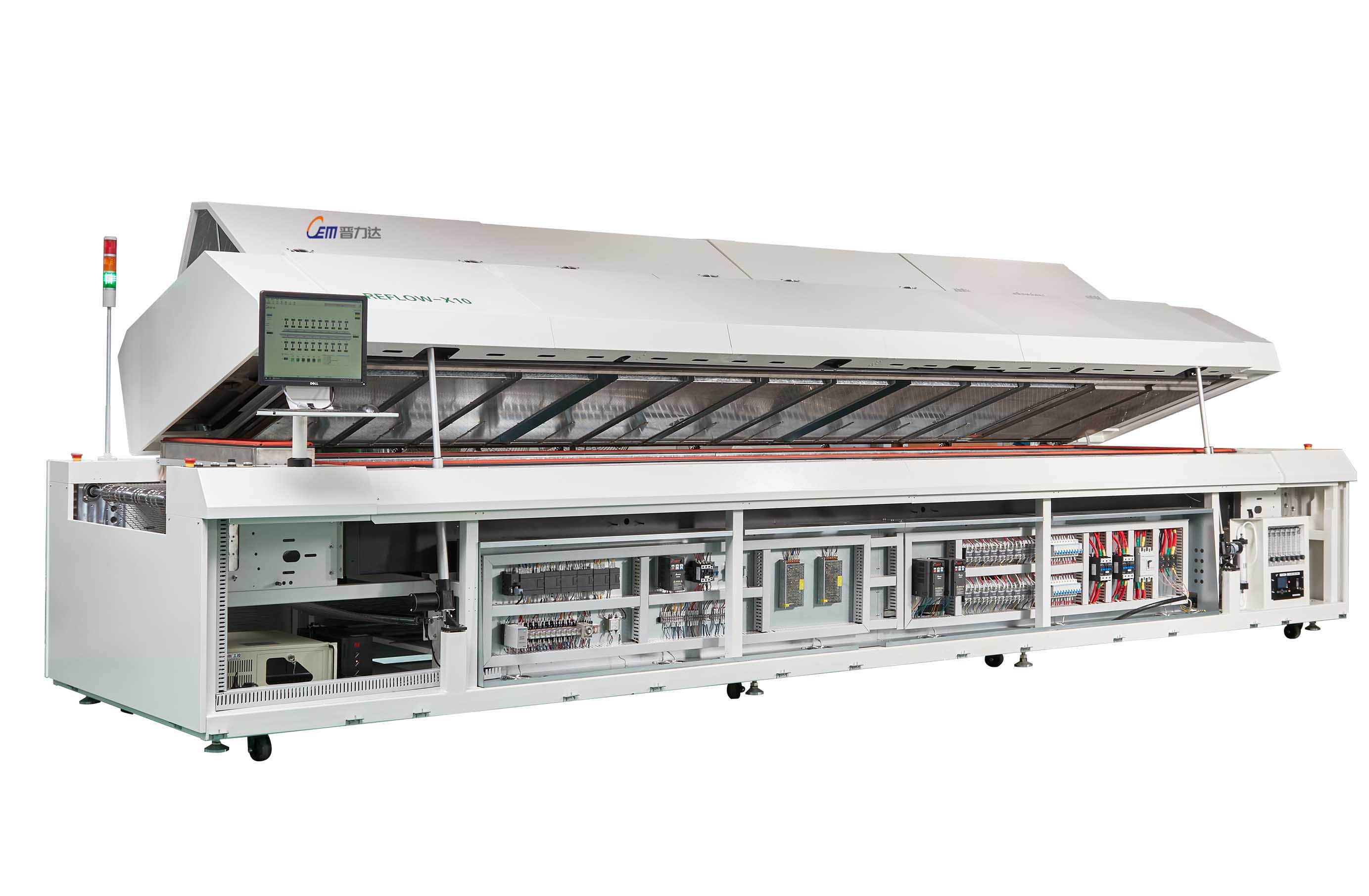●當(dāng)前的Reflow-X系列標(biāo)志著基準(zhǔn)-總能源節(jié)省 25%,N2 消耗量減少20%。旗艦產(chǎn)品 Reflow-X12 提供 12 個(gè)區(qū)域和超過(guò) 4.6米的工藝長(zhǎng)度